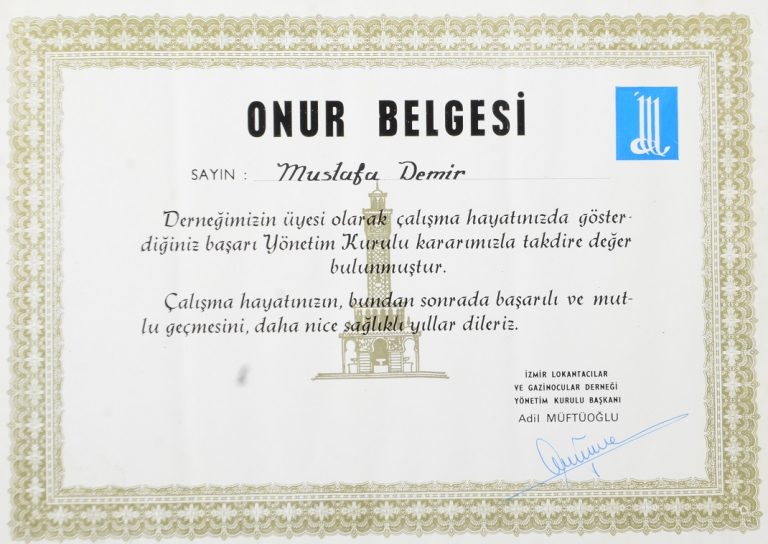 1992 yılının sonunda halen faaliyetini sürdürmekte olduğu Goncalar Mahallesinde ki eski yerine dönmüştür ve 2002 yılına kadar çalışmıştır. 2002 – 2006 yılları arasında kapalı kalan dükkanı 2006 yılında oğlu “Birkan Demir’in” faaliyete geçirmesiyle Mustafa Demir mesleğe geri dönüş yapmıştır. 2009 yılında “Mustafa Usta” ismi tescilli bir marka haline gelmiştir. 1959 yılında başlayan ustalık ve işletmecilik hayatına, bu güne kadar dönemin Karşıyaka Belediye Başkanı “Cihan Türsen” tarafından verilen “ONUR BELGESİ”; yine dönemin İLGO ( İzmir Lokantacılar ve Gazinocular Odası ) başkanı “Adil Müftüoğlu” tarafından verilen “ONUR BELGESİ” ve İzmir Gurme Guide dergisi editörü Ahmet Güzelyağdöken tarafından verilen “TÜRK MUTFAĞI” kategorisinde “BİR ADIM ÖNE ÇIKANLAR” ödülünü sığdırmıştır.